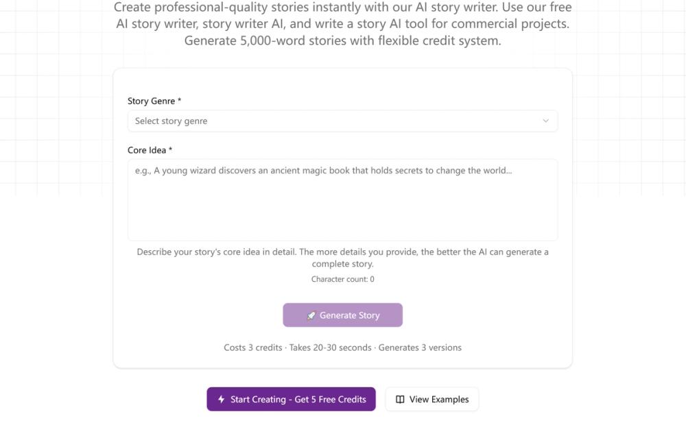 The tool supports all major genres, including fantasy, sci-fi, romance, mystery, thriller, adventure, slice-of-life, children's stories, and more. Each generation produces three unique versions, giving you multiple creative directions to choose from instantly.