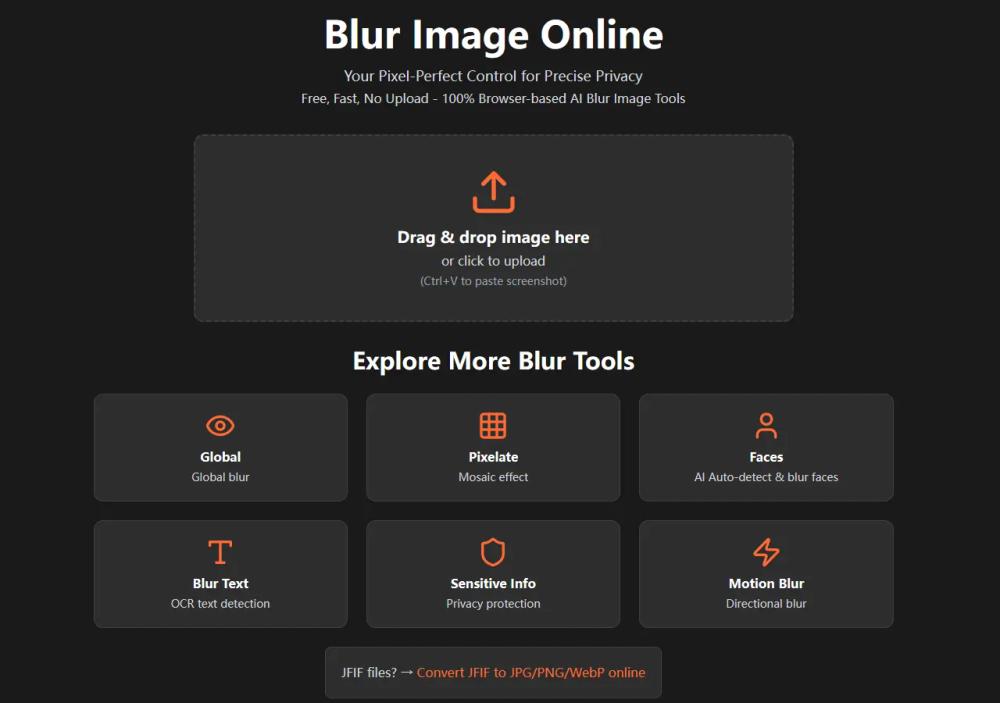 Blur Image Online is a powerful, free, and entirely browser-based image editing tool designed for precise privacy protection and creative image manipulation. Unlike many online editors, it processes all images locally on your device, ensuring no uploads to external servers and maximum data security. This zero-install platform offers a suite of seven specialized blur tools, making it an ideal solution for anyone needing to obscure sensitive information, enhance visual focus, or add artistic effects to their photos.