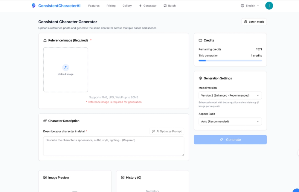 - Upload Your Character Photo: Begin by uploading a clear image of your character. Our sophisticated AI analyzes unique facial features, clothing, and other characteristics to ensure perfect consistency in all subsequent generations.