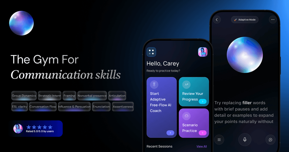 Conversly is an innovative, AI-powered communication gym designed to transform how individuals communicate in various real-life scenarios. This multilingual platform offers immersive roleplay and personalized coaching to build lasting social confidence. It meticulously tracks and analyzes vocal delivery, conversational dynamics, social presence, strategic intent, and assertiveness in real-time, providing instant, adaptive feedback. The platform's comprehensive approach begins with a quick baseline assessment and goal mapping. Users complete a micro-questionnaire to generate a personalized communication "fingerprint," highlighting their top weaknesses. This initial assessment also allows for the selection of preferred coach style presets, accessibility options, and privacy defaults, ensuring a tailored learning experience. At its core, Conversly features hyper-realistic roleplay scenarios for diverse situations such as job interviews, networking events, first dates, business meetings, and difficult negotiations. Users engage with AI opponents that can range from friendly to hostile, experiencing branching outcomes and constraint enforcement. During these sessions, the system provides immediate micro-nudges to correct common communication pitfalls like rambling, hedging, interruptions, or missed connections. Beyond live practice, Conversly facilitates continuous improvement through detailed post-session analysis. Users can review annotated replays of their interactions, receive "counterfactual rewrites" suggesting 2-3 better lines for specific moments, and track their progress via weekly reports, micro-drills, and a Spaced Repetition System (SRS) Move Library. This structured feedback loop, combined with debriefs, follow-up drafts, and a "mission autopilot" feature, aims for effective real-world transfer of learned skills. The benefits extend across various aspects of communication: * Dating & Social Life: Transforms overthinking into relaxed, real conversations, leading to smoother interactions and fewer awkward pauses. * Boundaries & Tough Talks: Enables users to set boundaries clearly and confidently without sounding harsh, fostering calm under pressure. * Sales & Demos: Helps refine pitches and handle objections naturally, potentially increasing close rates and shortening sales cycles. * Job Interviews: Prepares users to confidently answer behavioral questions and articulate their story, leading to more interview invites and faster job offers. * AI Prompting: Teaches users to craft effective AI prompts for desired results and efficient token usage. Conversly's "Skill Matrix" framework targets seven core communication pillars: 1. Clarity Engine (Words/Ideas): Addresses pace, pauses, filler words, monotone, hedging, and ambiguity. 2. Voice Coach (Prosody): Focuses on tone, rhythm, inflection, volume stability, and vocal variety. 3. Body Language (Visible - Coming Soon): Offers video-based feedback on presence, posture, expression, gestures, and congruence. 4. Social Radar (Perception): Helps detect missed cues, improve question quality, prevent over-talking, and identify biases. 5. Turn Control (Mechanics): Enhances listening, conversational flow, interruption timing, and group floor control. 6. Influence/Status (NEW): Develops persuasion techniques and collaborative objection handling for purposeful and integral conversations. 7. Cultural (NEW): Adapts communication style for cross-cultural connections, building awareness of formality, expectations, and inclusive interaction. The platform is available on iOS and Android, with pricing plans including a "Starter" option for daily AI voice practice and core scenarios, and a "Pro" plan offering extended practice time, advanced scenarios, live adaptive coaching, deep analytics, premium avatar...