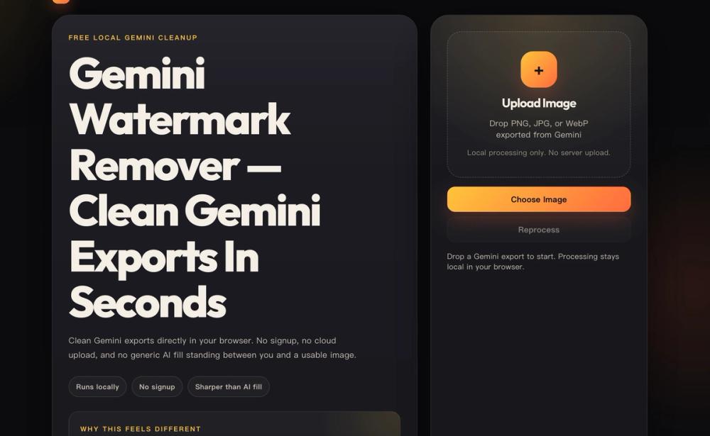 Why it works Purpose-built cleanup beats generic AI patching The tool is tuned for a single pattern: Gemini's export watermark. That is why the workflow is faster, more private, and visibly cleaner than a generic image editor.