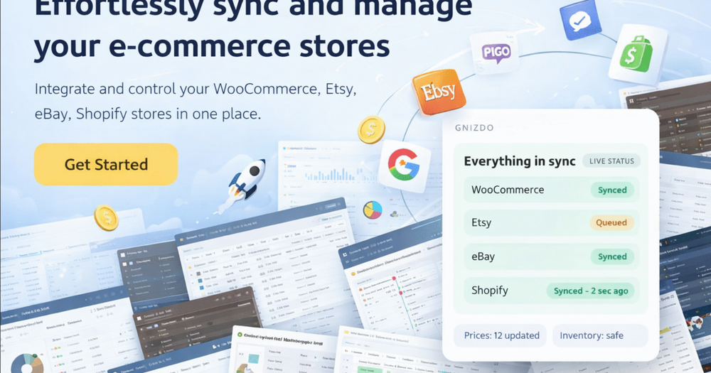 GNIZDO is a web-based multichannel inventory, price, and order synchronization tool built for ecommerce sellers who operate across more than one sales platform. As stores grow beyond a single channel, keeping data consistent becomes increasingly difficult — and most existing tools or spreadsheets fail to scale with that complexity.