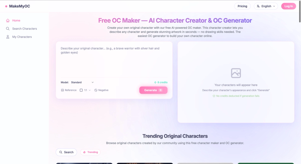 Whether you're a writer looking for character references, a game developer prototyping designs, or just an anime fan having fun, MakeMyOC makes character creation accessible to everyone.