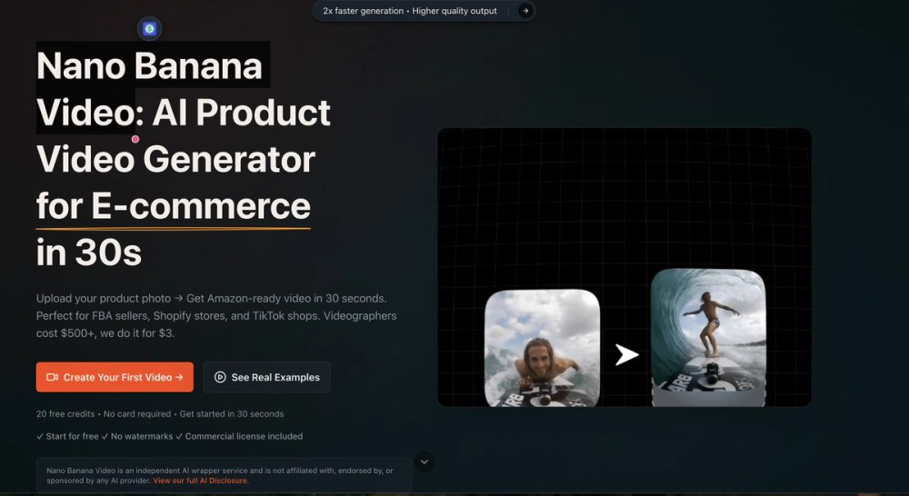Nano Banana Video is an innovative AI-powered platform that revolutionizes video production for the e-commerce industry. In a digital landscape where video content drives engagement and sales, traditional video production remains a bottleneckāit is slow, expensive, and logistically complex. Nano Banana Video solves this by allowing sellers to generate professional-grade product videos instantly using just a single product image.