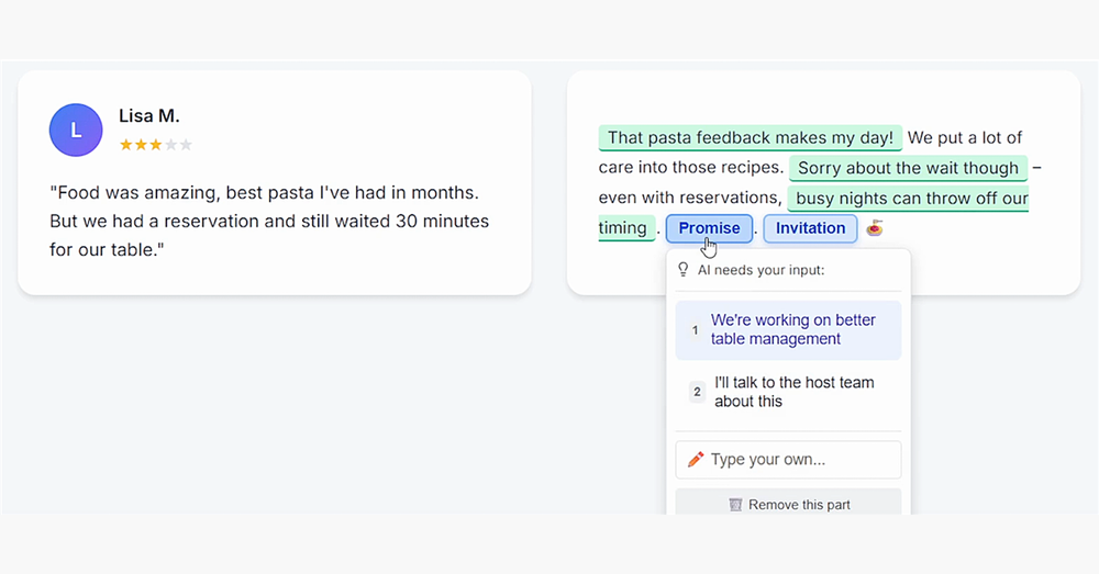- Authenticity and Customization: While AI-generated, the tool provides a foundation that can be easily customized to maintain a unique brand voice, ensuring responses feel genuine and personal.