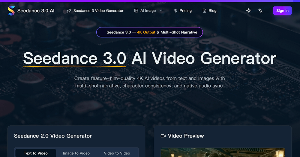 Seedance 3.0 is a free AI video generator for creating 4K cinematic videos from text and images with multi-shot narrative, native audio sync, and char...