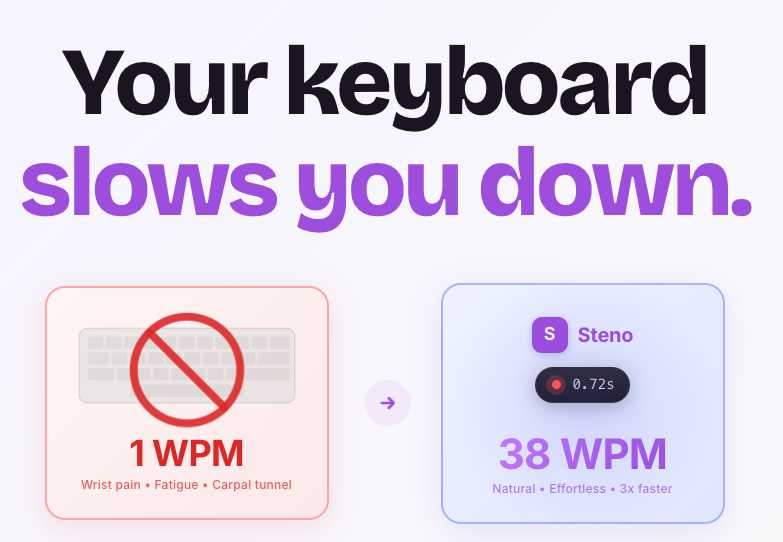 Steno is a high-performance voice-to-text application designed for macOS and iOS, revolutionizing how users interact with their computers and mobile devices. Built natively in Swift, Steno prioritizes speed, accuracy, and privacy, offering a seamless dictation experience across virtually any application. Unlike traditional typing, which can be slow and lead to fatigue, Steno enables users to speak at up to 150 words per minute, significantly boosting productivity.