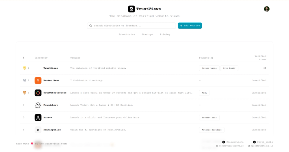 TrustViews is built for makers and founders who launch on many directories, ranking sites, and communities and need a simple way to prove that those launches translate into real attention. Directories can also use it to certify their own traffic with a neutral badge, showing startups that they really send clicks and not just impressions or vague promises. Over time, this creates an ecosystem where visibility is measured consistently, where rankings and leaderboards are based on verified views, and where decisions about where to launch are driven by data rather than guesswork or hype.
