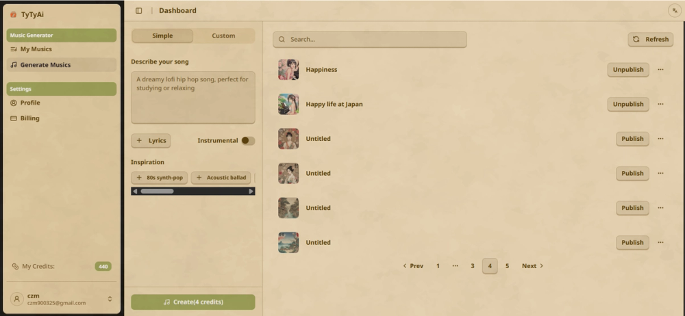 Multiple Genres are supported, offering immense versatility. Whether your project calls for classical symphonies, modern electronic beats, or anything in between, TyTyAi can generate music in virtually any style to match your specific vision. This broad genre support makes it an invaluable tool for diverse creative needs.
