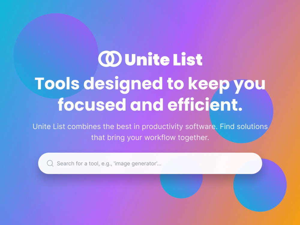Unite List is a platform that brings together a curated selection of tools aimed at boosting productivity and streamlining workflows. It serves as a discovery hub for various applications and services designed to enhance efficiency across different domains.