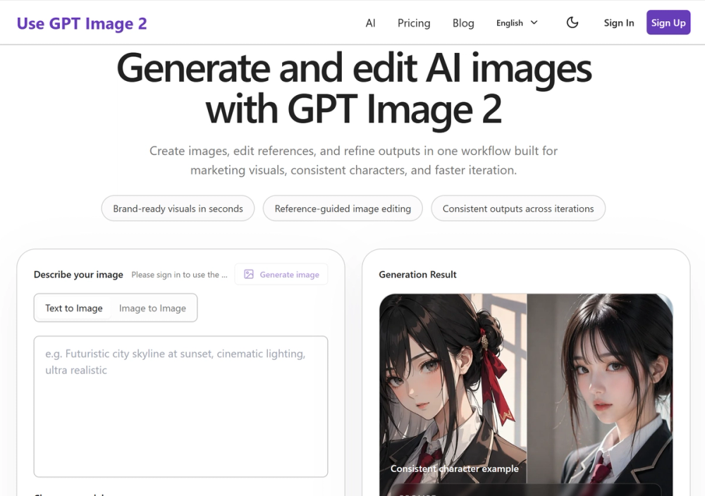 - Design Iteration: Rapidly test different visual concepts and styles. Why GPT Image 2 Stands Out Unlike basic text-to-image generators, GPT Image 2 prioritizes commercial usability and consistency. Its reference-guided workflow ensures that outputs align with brand guidelines, while natural language editing makes it accessible to users without design expertise. This combination of speed, control, and quality makes it an essential tool for modern creative teams.