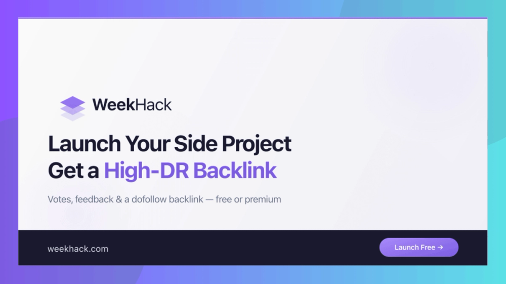 What you get when you launch on WeekHack A dedicated product page with your logo, screenshots, promo code, and maker profile Seven full days of homepage visibility — not seven hours Community votes, threaded comments, and real feedback from other makers If you finish in the top 3: a winner badge, a permanent dofollow backlink, and a featured spot in our weekly winners newsletter Free for everyone — no gatekeeping, no waitlist invites, no “who you know” Optional upgrades for serious launches
